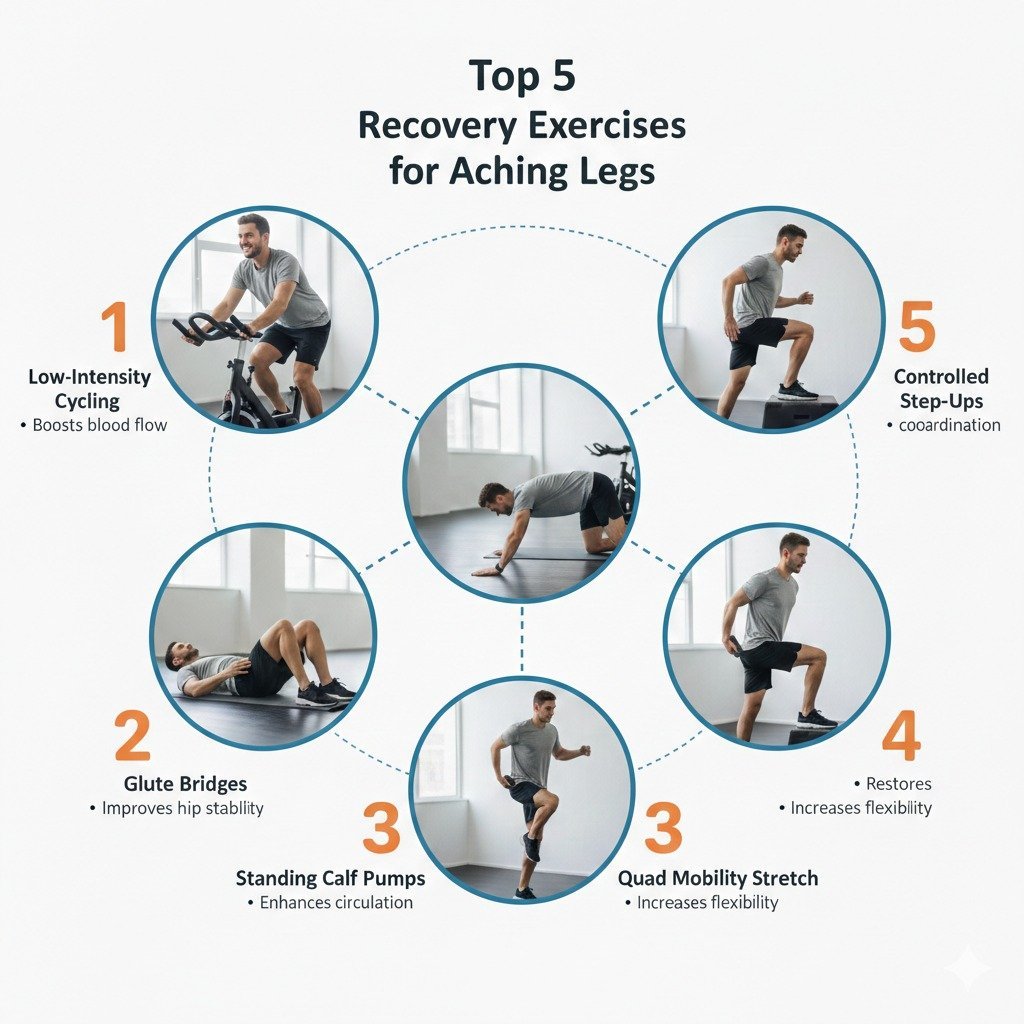 Light aerobic movement increases blood flow to stressed tissue. Brisk walking, low resistance cycling, or gentle swimming stimulates oxygen delivery without adding strain. Research in sports medicine shows that low intensity activity improves lactate clearance and reduces perceived soreness faster than complete rest. Controlled mobility drills also maintain joint range and prevent compensatory tension.